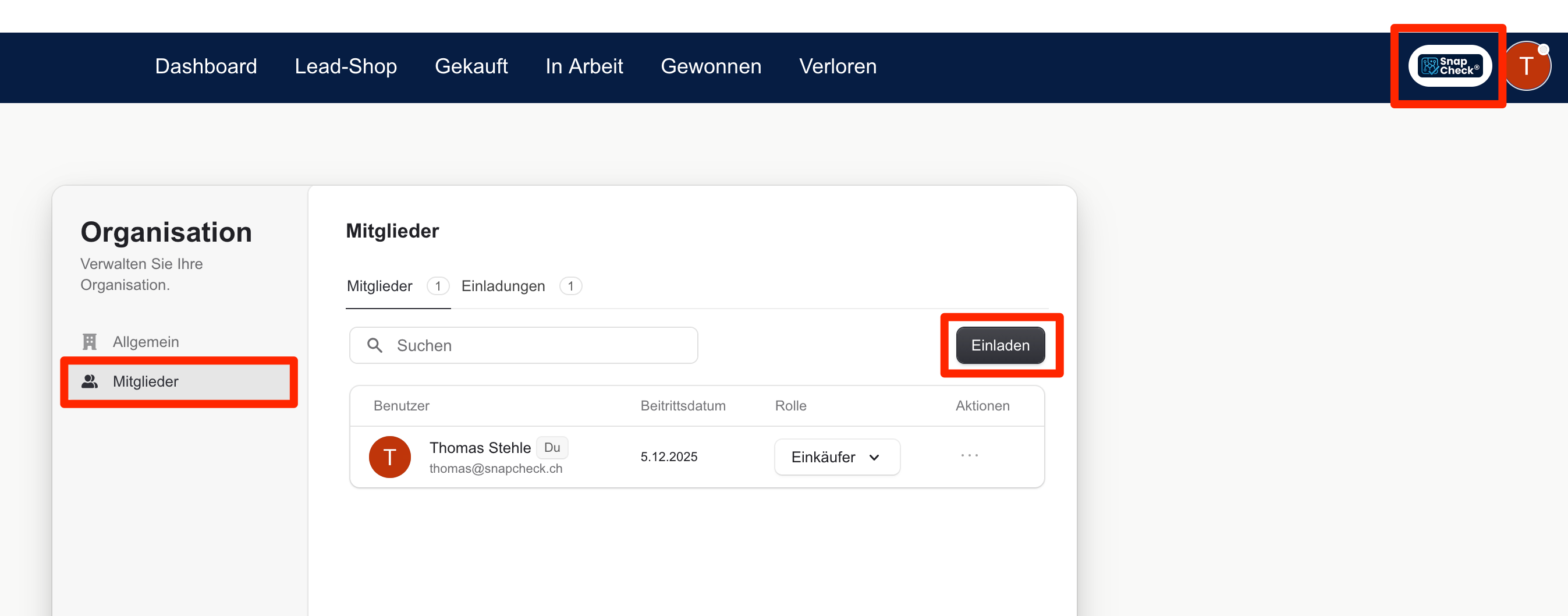 Mitarbeitende können selbstänig zum Lead-Portal hinzugefügt werden. Gehen Sie wiefolgt vor: